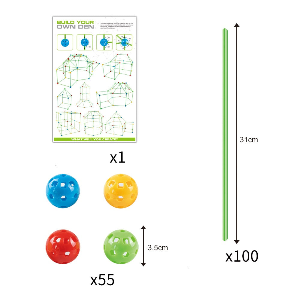 Designed for hands-on fun, this kit is lightweight yet durable, making it safe for little architects. Simply connect the rods and joints to bring unique fort designs to life. Cover it with a blanket or fabric for the perfect secret hideout!